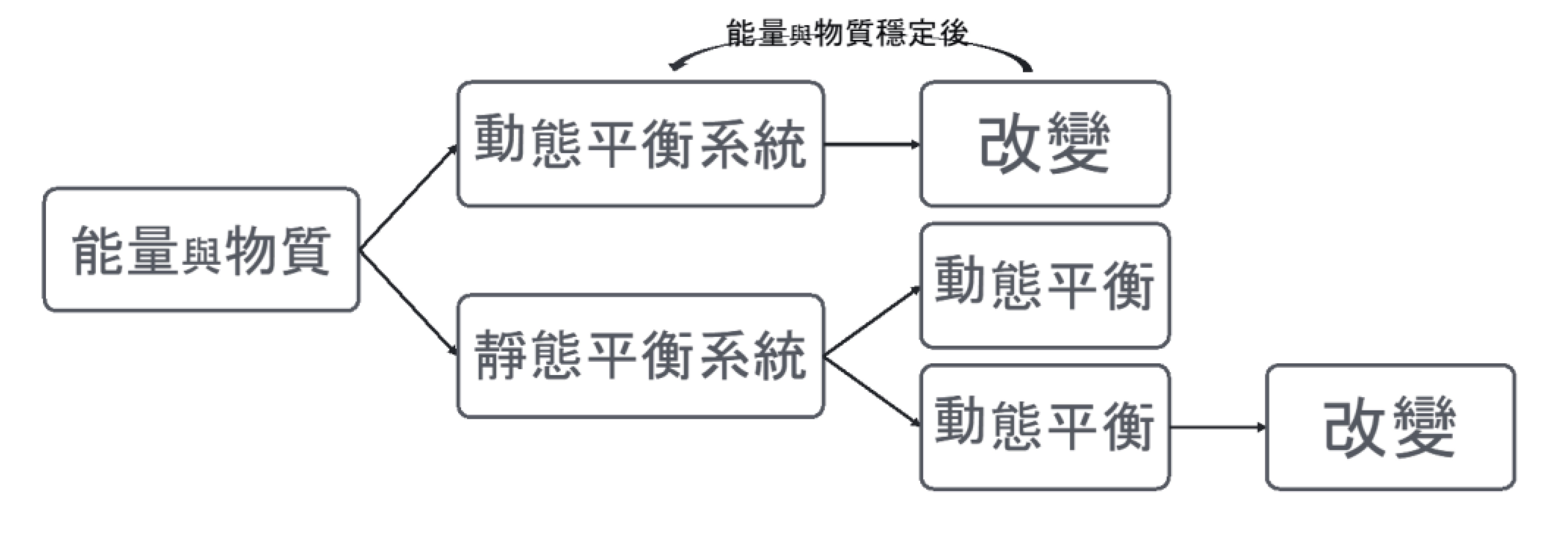 另外,筆者整理能量與物質改變系統示意圖(如圖2)說明能量與物質進入穩定系統(動態平衡與靜態平衡系統)之後,如何產生改變的歷程。最後,書中提供了穩定與改變思考架構圖(如圖3)幫助讀者快速的從兒童文學中找尋穩定與改變的足跡。