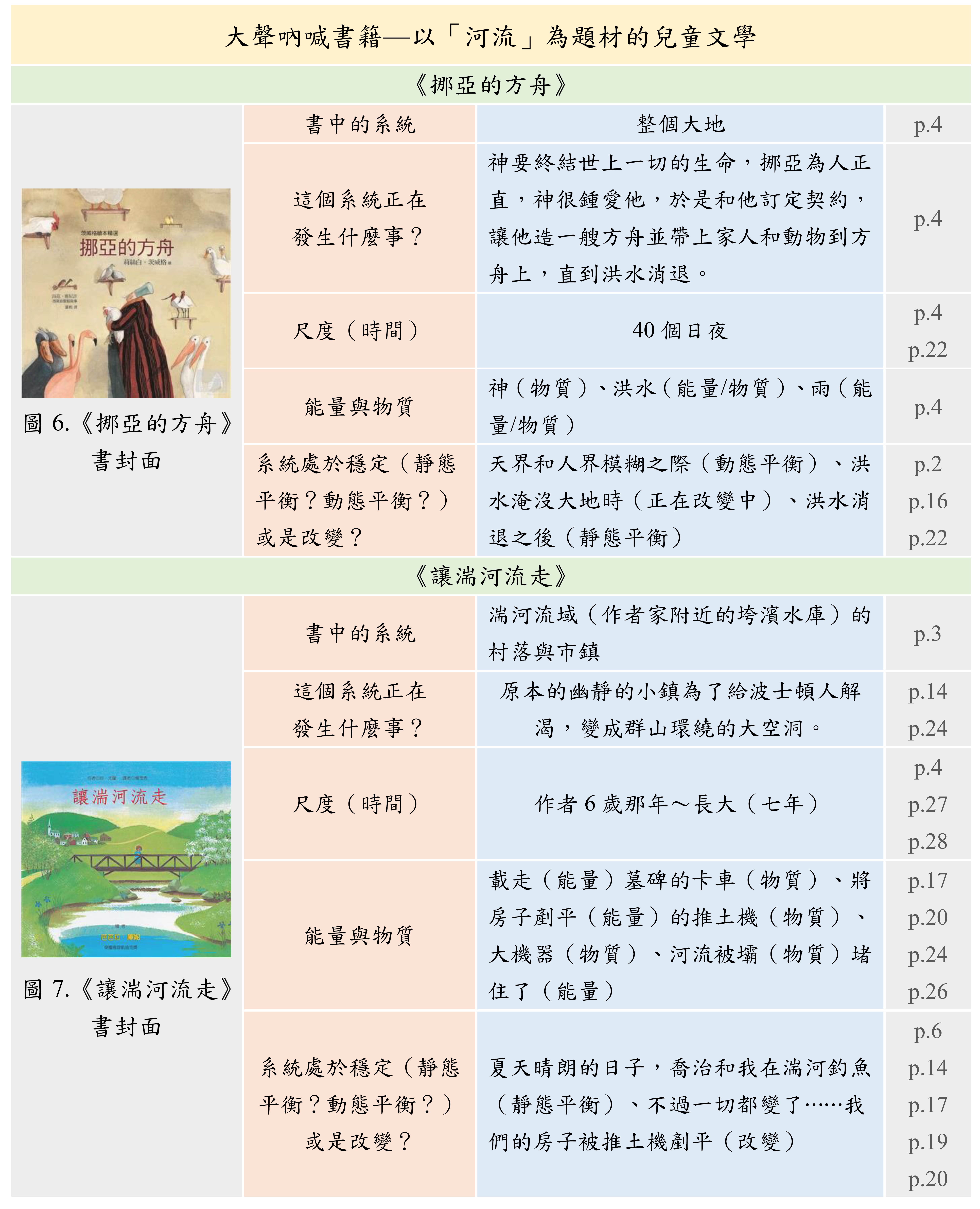 河流本身就是一個動態平衡系統,所以用河流來檢視穩定與改變是最好不過的題材了。下表2以《挪亞的方舟》和《讓湍河流走》這兩本書為例,進行簡單說明。