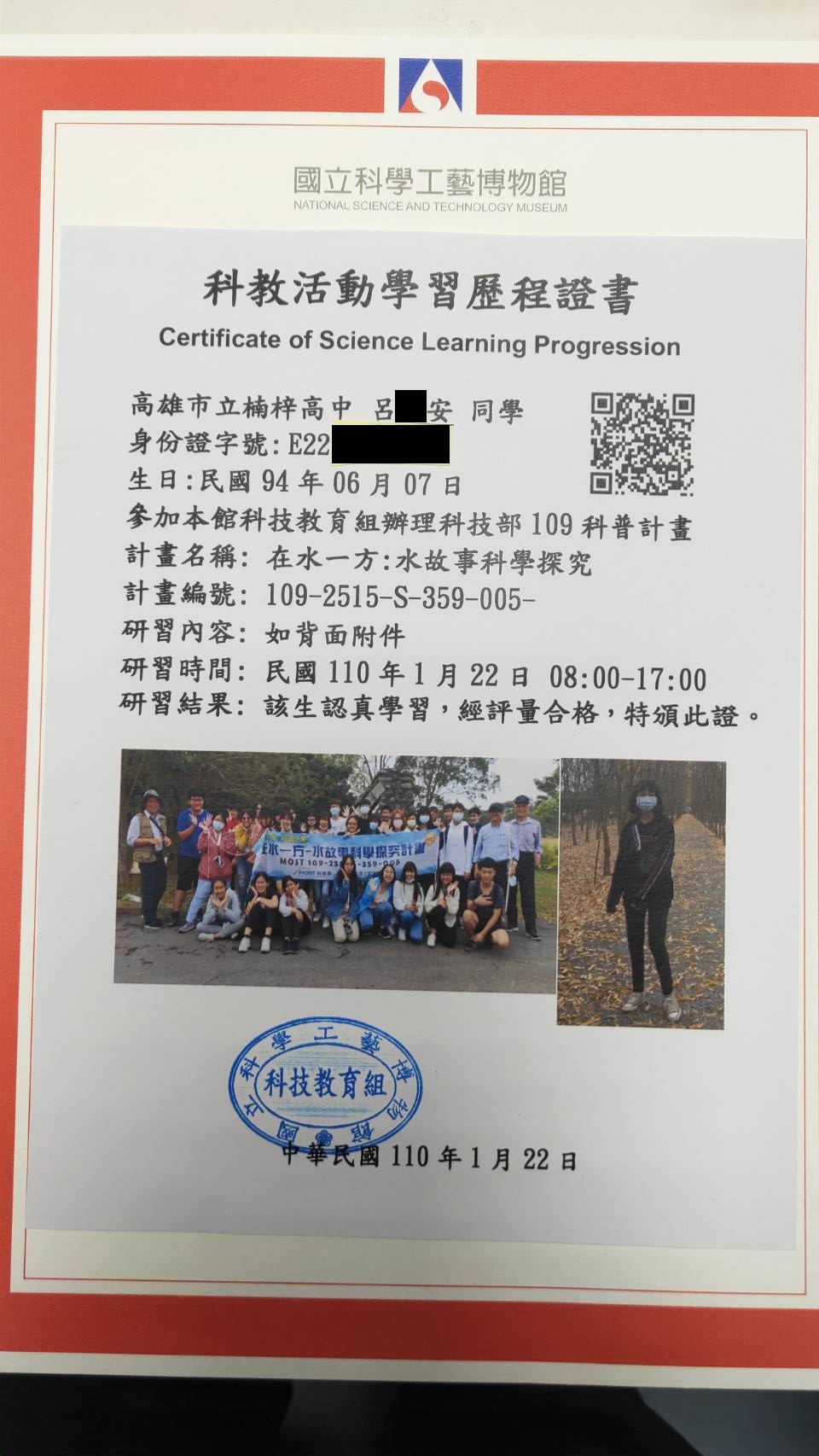 6.科普旅遊回饋輪答與製頒學員學習歷程證書,每小隊討論並彙整學習心得輪流發表,並針對未來水資挑戰提出創造性的想法(Creative Thinking),凡能有具體意見發表者,始能獲得科工館製頒的學習歷程證書(圖12)。