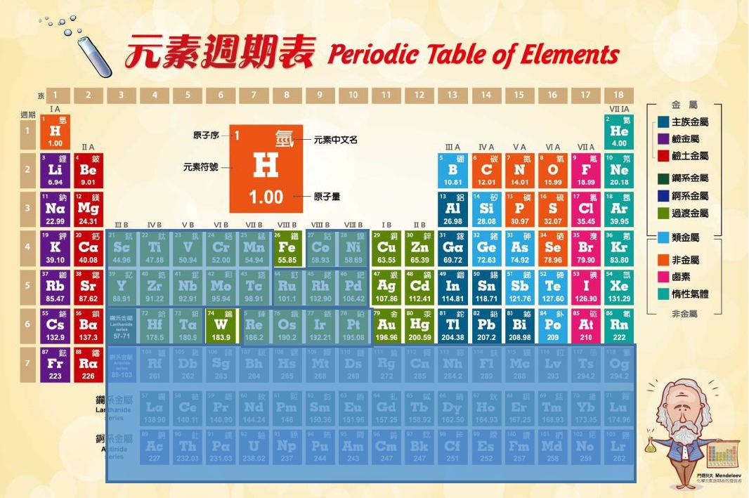 6. 藉由有趣的科學體驗活動,了解門得列夫週期表,學會元素符號及中文名稱、並了解各元素的排列規則從而認識元素性質。