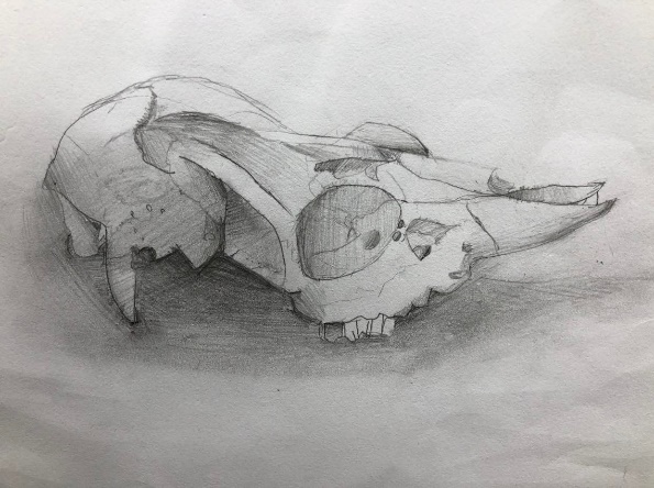 其後,為了讓學生能夠以專業方式記錄骨骼,筆者從自然教室找來兔子與虎鯨骨骼模型,請美勞老師利用任課時間指導骨骼素描。素描的對象還包括北極熊、雲豹、梅花鹿、河狸、狗等哺乳動物的頭骨(圖五、圖六)。
