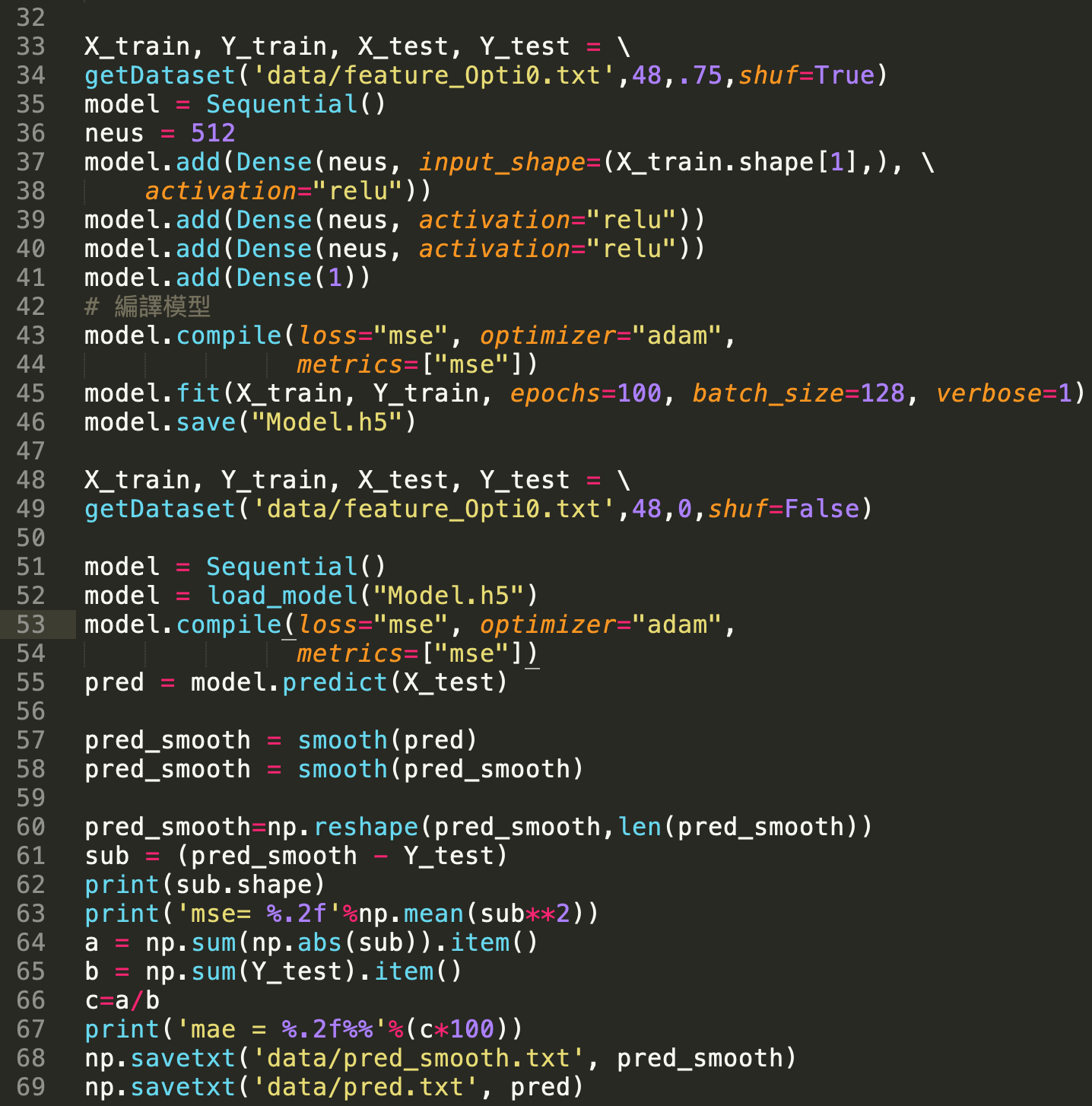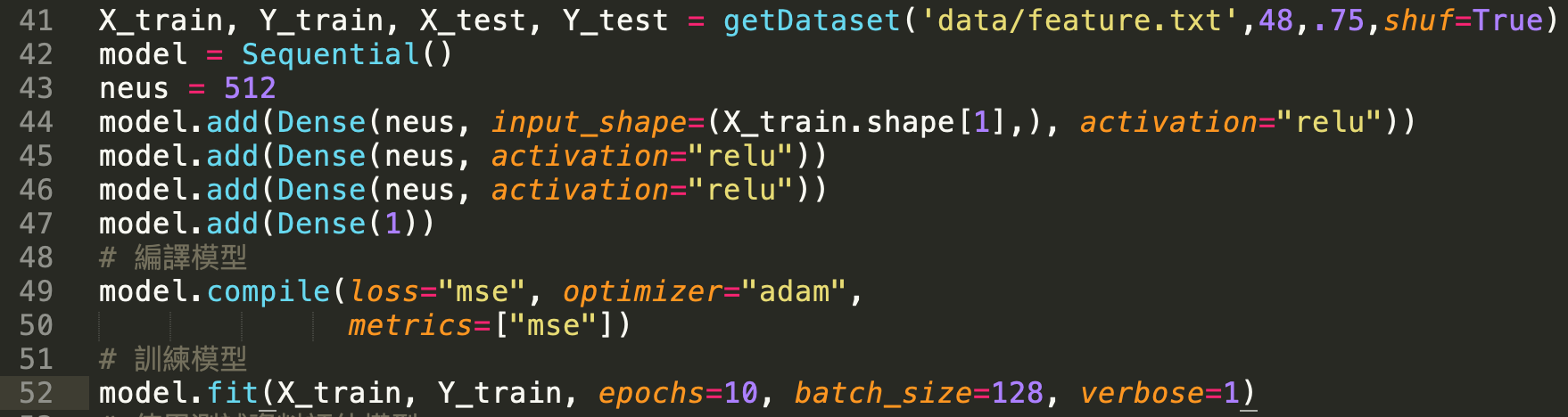第43~46行:訓練模型並儲存模型