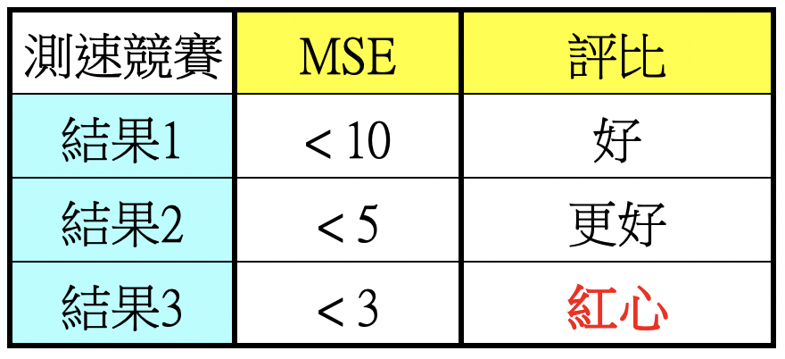 表9.測速競賽結果評比標準