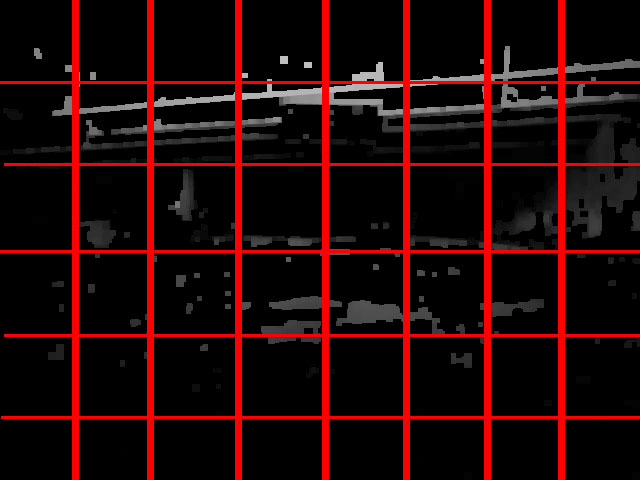 筆者一開始使用卷積神網路(CNN)進行訓練,但CNN較常用在分類,例如分辨貓或狗,而本專案目的是預測速度,最終只要有一個神經元即可,所以使用迴歸算法。本步驟將「第2步」的差距圖分割成8x6,共48個小格,每小格像素顏色值加總,每張差距圖取48個特徵。